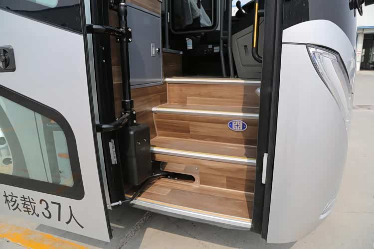 车门尺寸进行加宽、加大处理,便于乘客携带行李上下车。车门下方设计了大尺寸“安全窗”,驾驶员可以通过“安全窗”洞察车辆右侧盲区路况,进而提升行车安全。