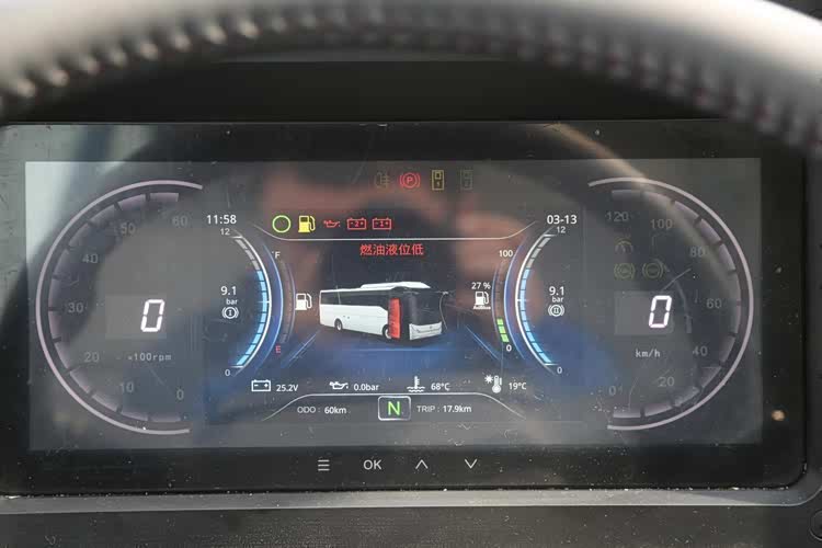 仪表采用全液晶数显设计,左侧为发动机转速表,右侧为车速表,中央及周边各类行车信息十分丰富,读取便利。收音机、行车记录仪、全彩液晶大屏、各类功能开关整齐的放置在仪表台之上,物理按键触手可及,规整有序。