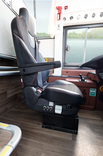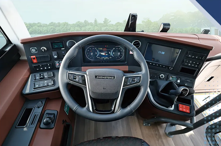 与常规客车落地变速杆的布局形式不同,中通H12的6挡手动变速杆设计在仪表台的右下方,增加车内通过性的同时,也更加便于驾驶员换挡操作,十分符合人机工程学。此外,中通H12搭载智慧旅团平台,可实时掌握车辆运营状态,降低运营成本、维保成本,提升运营调度效率、安全管理水平。