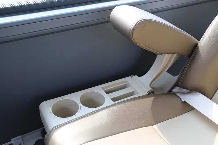 高档人机工程座椅可有效缓解旅途疲劳;高铁式无极升降侧窗帘,遮挡阳光不挡风光;环绕立体影音,旅途中放松身心;杀菌消毒系统,时刻保持车内干净清新。经乘坐体验发现,皮质包裹的座椅乘坐非常舒适,包裹性十分到位,乘坐舒适度丝毫不输航空和高铁座椅。更加人性化的是,每张座椅均配备高端折叠扶手、杯托、卡槽以及USB充电接口,无论落座哪个位子,每位乘员都可以享受到VIP级待遇。