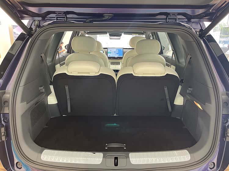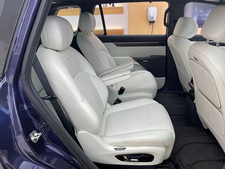 座椅全系都是仿皮材料,前排座椅支持电动调节、加热和通风。整车采用2+2+2的六座布局,第二排为独立座椅,支持前后调节、加热、通风和腿托调节,还可选装后排小桌板。