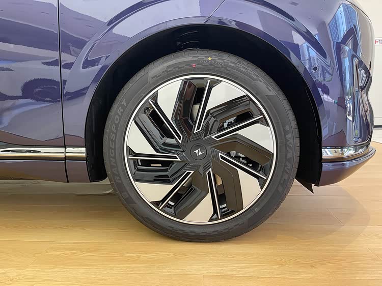 轮毂采用六幅的造型,能看到低风阻的元素。轮胎尺寸挺大,规格为265/45 R21。