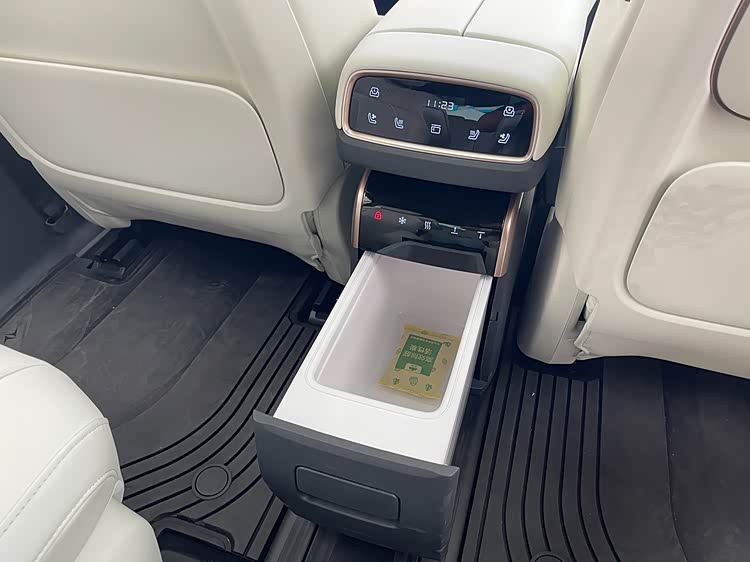 “冰箱”来了,同样是一个选装配置。前面说到为什么中央扶手箱深度很一般,原因就是这个,需要为冰箱留出空间。
