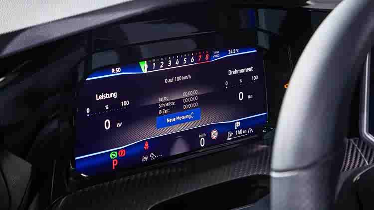 内部来看,高尔夫R使用了12.9英寸的中央触控屏和10.2英寸的数字仪表盘,而且仪表盘还使用了高尔夫R的一些细节,座舱也进行了重新设计,配备了照明音量控制和温度模块。