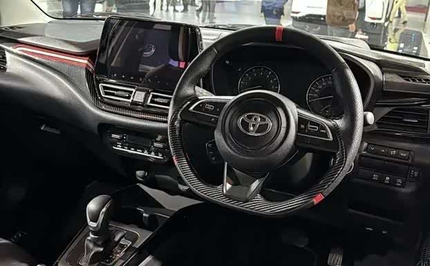 看向车身内部,全新 锐志(参数|询价)的内饰中控部分以黑色主调为主,在一些不起眼的地方用上红色点缀,整体给人的感觉非常的凶狠战斗,特别激进!打孔皮革材质包裹的三幅式多功能方向盘,上手想必非常舒适易于操控。