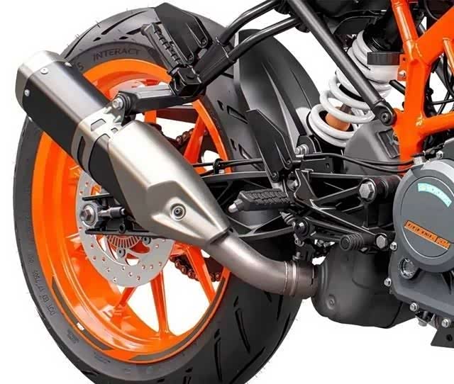 KTM 250DUKE采用纤薄轻巧的编织车架来减重。动力方面搭载的是249cc的单缸水冷发动机,最大功率22KW,最大扭矩24Nm,并配备滑动离合。