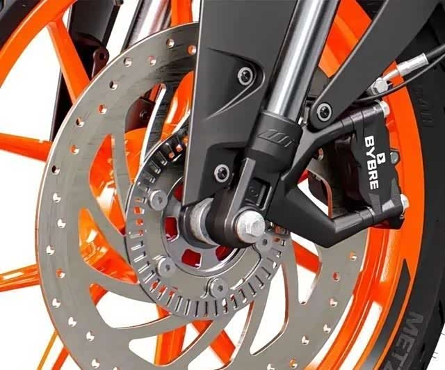 配置方面BYBRE刹车卡钳和WP减震器都延续了390 DUKE上的相同配置,另外博世双通道ABS,后单活塞浮动卡钳进一步提升了产品优势。