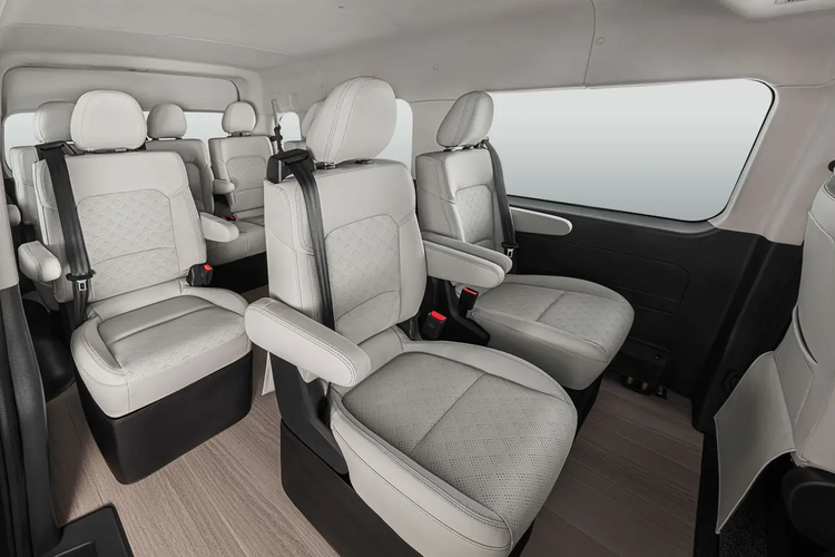 图雅诺大V EV则提供了7座和9座的布局选择,满足了日常客运、旅游以及商务通勤等多种场景的需求。无论是用作接送乘客、进行团体旅游,还是作为商务通勤车辆,图雅诺大V EV都能轻松应对。豪华仿皮座椅和宽敞的车内空间,确保了乘客的舒适度和车辆的高效利用。