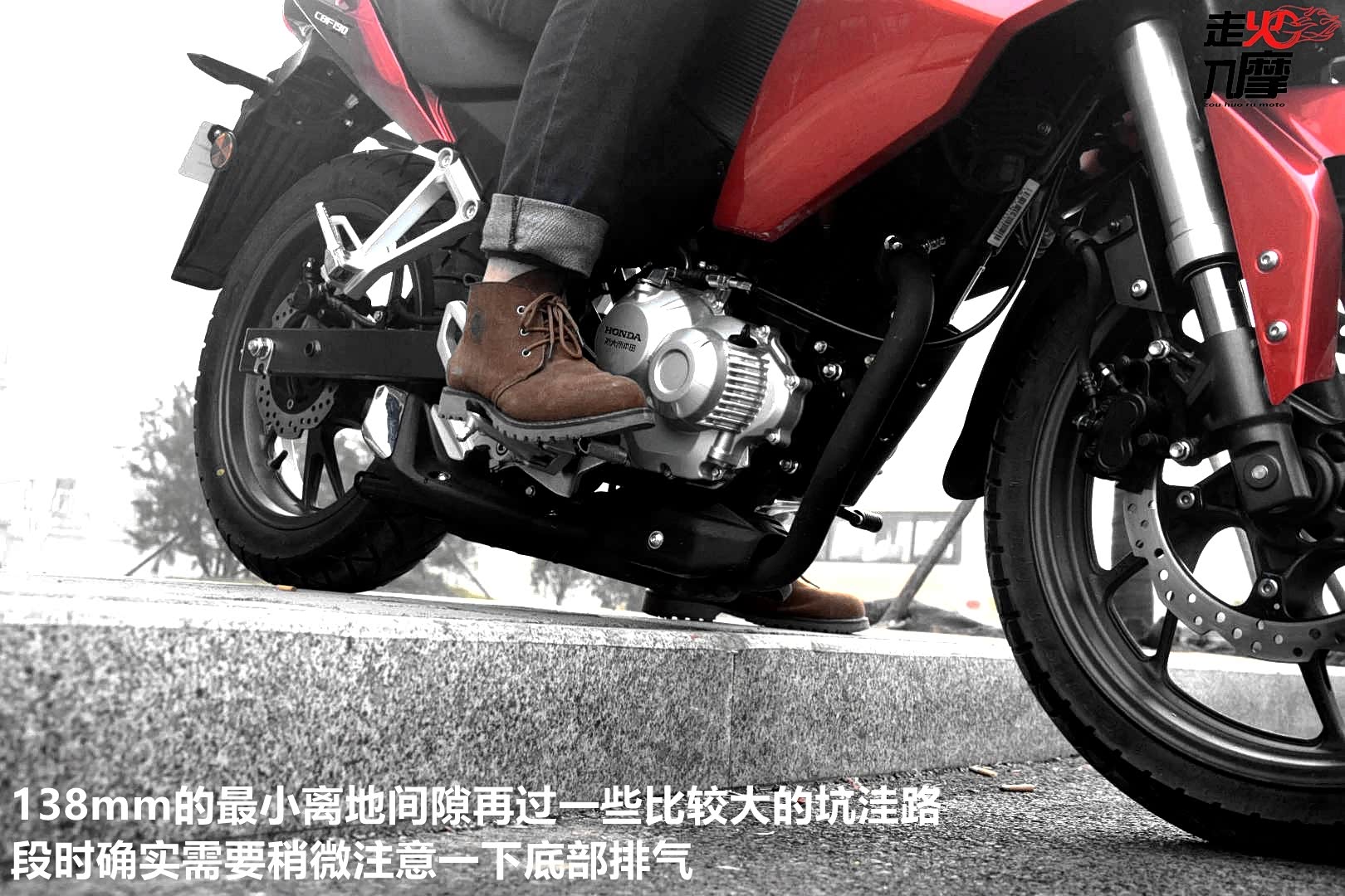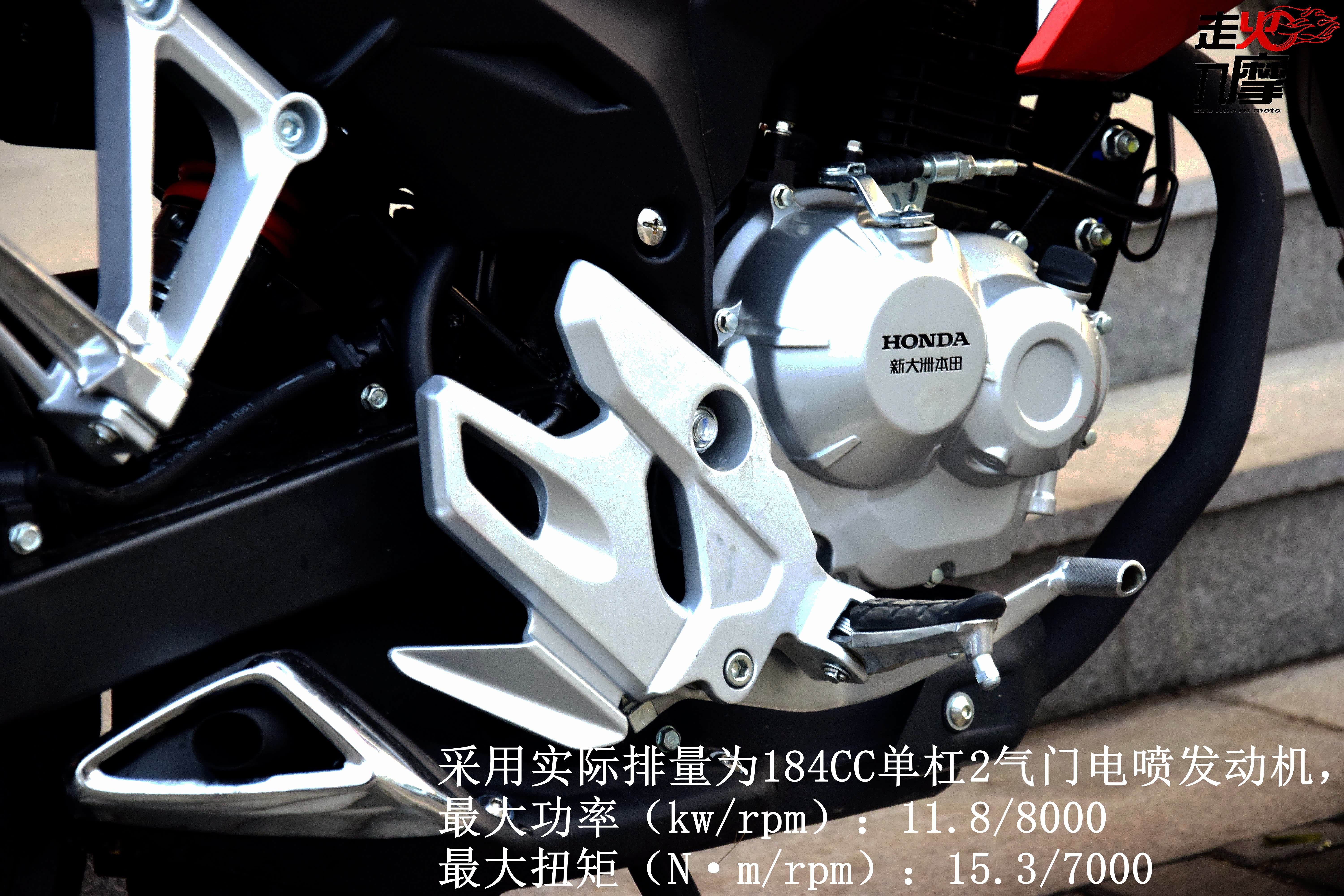 首先这台车的动力而言和CBF190R相比并没有太大的感受上的变化,但是有一点值得称赞的是在1档起步的动力调教上比CBF190R做了不小的优化,之前我在测试190R的时候就曾说过这台车的1档真的是太鸡肋了,转速到底速度还是不会有太快的提升。意思就是说190R的1调教的扭力输出非常的小,明显和往后几个档位的动力输出不成正比,而且换挡顿挫感比较强烈。现在到了这台190X上这个问题得到了很好的改善,1档输出调教的比较均匀而且换挡时顿挫感也是非乎其微,就它的动力而言市区骑行完全足够,储备动力充足超个车什么的也不是什么难事儿。