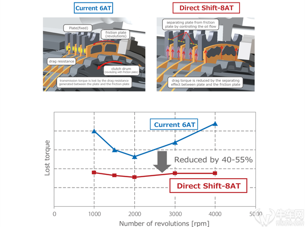 不过,工程师面对最大的挑战不是体积问题,而是如何降低扭力的流失,优化内部结构机件就是一个好方法,为此,工程师们在降低齿轮的摩擦系数做出努力,这样一来可以降低齿轮在进行咬合动作时的动力流失,另外,原厂部件也采用了特殊的铸造工艺,对比6AT来说,它的动力流失可以降低一半,可谓惊人。
