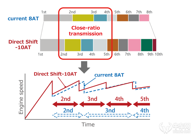 搭载于这两款车型可以看出,它既要有很好的驾驶体验,还要有平稳顺滑的换档结果,爱信的这个10AT变速箱号称媲美双离合变速箱的换档速度,其增加了齿轮的数量,但据说它又比先进的8AT更小更轻巧(下图)。