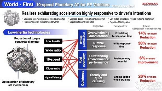 不过,丰田并不是第一个采用10速变速箱的厂商,当然,也不是只有丰田才有黑科技的,要知道,世界上第一台应用于横置动力平台的10AT变速箱是出自本田宅男之手,由于爱信、采埃孚等巨头把控了行星齿轮结构AT变速箱的专利和技术,本田才走上了自主设计、开发平行轴变速箱之路。一个前驱10AT,一个后驱10AT,看似没有可比性,但爱信的工程师的压力又来了…