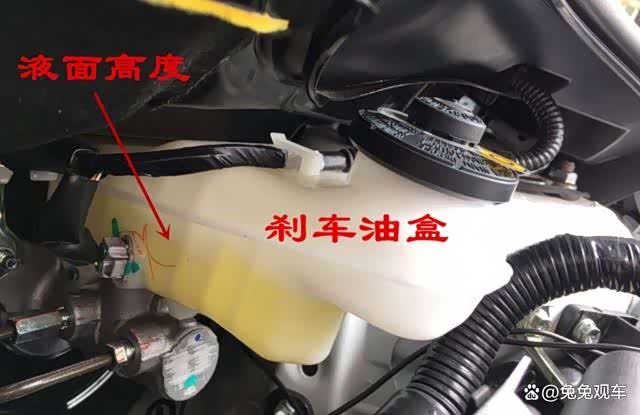 另外还有刹车油,大家一般很少遇到需要更换刹车油的情况,所以可能很多人不太了解如何判断什么时候该更换。 刹车油是否需要更换是要看里面的防水量的,一般都需要一些专业的仪器进行检测,如果想要凭肉眼评判的话,也可以打开刹车油的油壶,大致看一看油液是否清澈,如果看不清楚的话,可以用手指蘸一些看滴落的油液颜色是否是清澈透亮的。