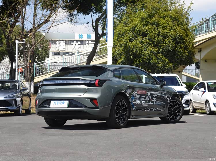 再来是极氪001。极氪001在首发之时,不少人把它当作一款SUV车型。这也难怪,毕竟极氪001无论是车身高度还是整体比例,都给人一种SUV的即视感。但随着实车出现在大众眼前,大尺寸轮毂配合空气悬架降低车身高度,使得极氪001更具运动属性,更符合它“猎装”的运动风定位。极氪001的车头部分依旧是与领克相近的家族设计,日间行车灯突出于机盖两侧。侧面则是有一些跨界猎装车的感觉,如果选装21寸轮毂,在侧面视觉效果方面极氪001确实没有显得那么像SUV。