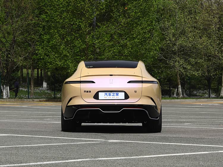 尾部造型就比较厚重了,上方配备小巧的可升降尾翼,两侧细长的尾灯组采用黑化处理,后包围的黑色护板尺寸宽大,周边还采用镀铬条勾勒,提升高级感。