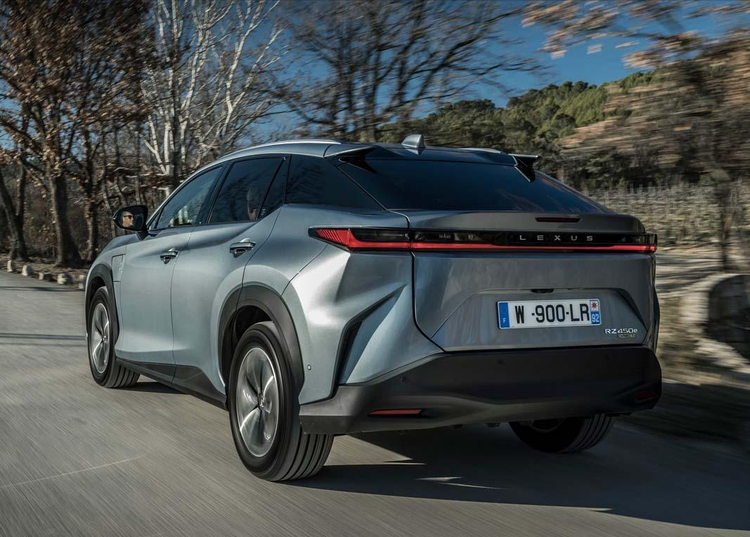 雷克萨斯RZ450e的外观设计延续了雷克萨斯一贯的豪华风格,车身线条流畅,前脸采用了标志性的纺锤形格栅。车身侧面造型优雅,搭配大尺寸的轮毂,整体造型充满未来感与科技感。车尾部分的设计简洁且具有层次感,贯穿式的尾灯设计使整车更显宽阔。