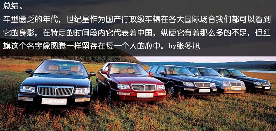 从2001年到2007年长达6年的生命周期,为什么还要称之它为昙花一现?因为如果我们除去政府和出租车公司的集中采购,这辆世纪星的销量是非常惨淡的,在它生命周期的末段我们很难在路上见到它的身影,如今58上贱卖的政府退役车倒是世纪星的天下。有人说这样一辆车的出现势必会成为官车,没错在车型匮乏的年代,世纪星作为国产行政级车辆在各大国际场合我们都可以看到它的身影,在特定的时间段内它代表着中国,纵使它有着那么多的不足,但红旗这个名字像图腾一样留存在每一个人的心中。
