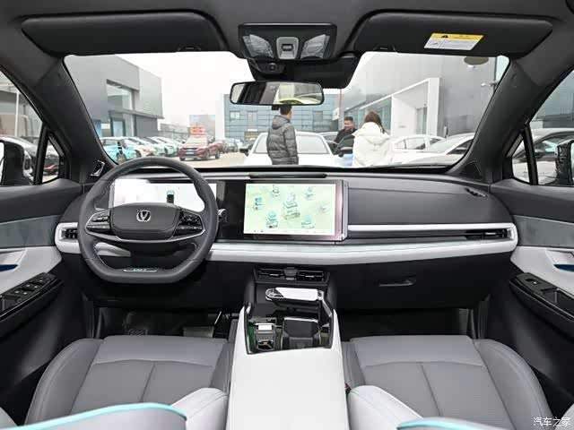 内饰部分,新车换装了全液晶仪表盘与中控多媒体显示屏相连接的双联屏设计,还配备了高通骁龙8155芯片,车机界面的UI设计也得到了优化;另外新车还搭载了长安全新域控平台CIIA1.0+,可实现下电后OTA升级,并具备智能电源管理自动预警,车辆诊断支持故障自诊断和远程诊断等功能。