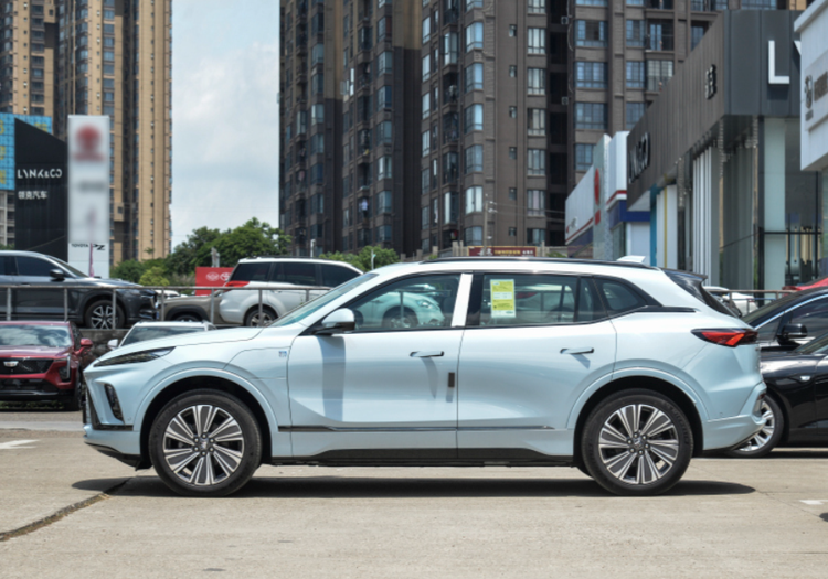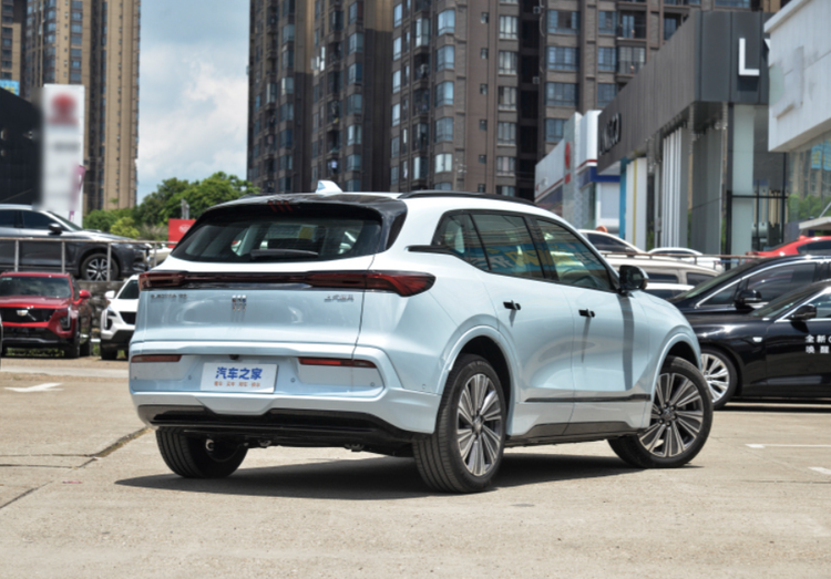 车身侧面,别克E5标续影音版展现出流畅而富有力量感的线条。车顶带有明显的弧度,搭配粗壮的行李架和鲨鱼鳍设计,为整车增添了几分运动气息。分段式腰线设计巧妙地勾勒出车身侧面的层次感,而弹出式门把手则有助于降低风阻,提升能效。轮眉和侧裙部分的隆起筋线则赋予了车辆更强的肌肉感,多幅式轮毂造型大气且动感十足。