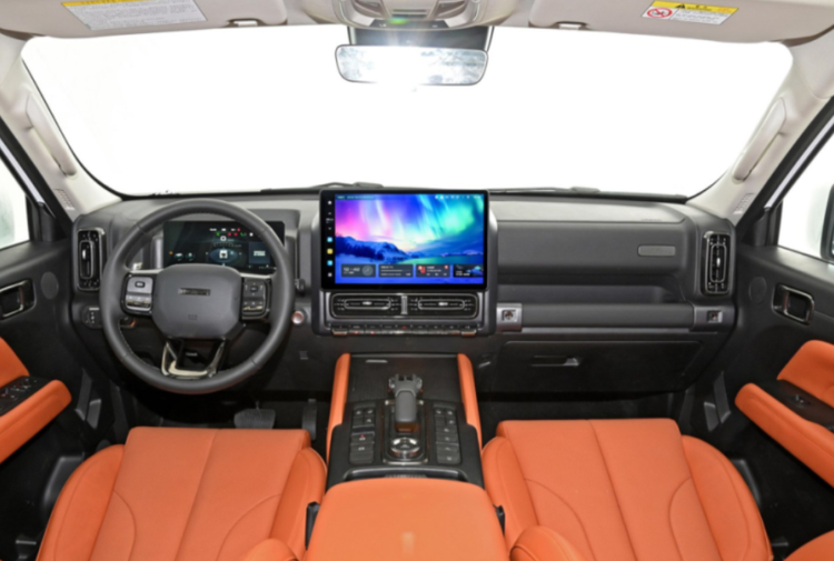 新车提供了两种外观版本,一种是方形大灯版本,这种设计更加符合当下主流城市硬派越野车的风格,黑化的前格栅和U形LED灯组增加了运动感,而方盒子的外挂后备厢则进一步强化了其越野属性。另一种则是此前发布的常规越野版本,采用圆形大灯和大面积镀铬装饰的中网,搭配裸露的铆钉和护板,展现出强烈的硬派气息。这种双版本策略为消费者提供了更多选择,无论是追求时尚运动还是传统硬派的消费者都能找到心仪的款式。