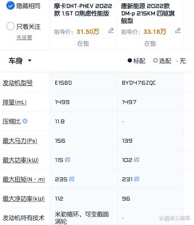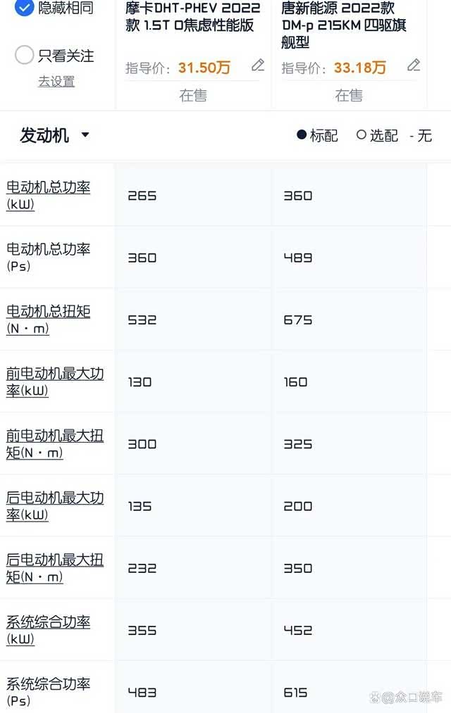 电机功率表现,比亚迪的综合扭矩和功率比摩卡DHT 更高