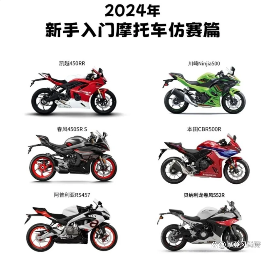 对于热爱速度与激情的新手骑士来说,选择一款合适的仿赛摩托车是踏入这个领域的重要一步。在众多的车型中,我们精选了几款2024年适合新手的仿赛摩托车,它们分别是凯越450RR、春风450SRS、阿普利亚RS457、川崎Ninja500、本田CBR500R和贝纳利龙卷风552R。这些车型各具特色,既有适合初学者的友好设定,也拥有足够的性能让骑士在赛道上驰骋。