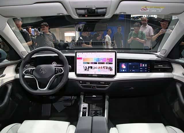 坐进车里,新车平坦的中控台上镶嵌着液晶仪表,后排娱乐屏幕和漂浮的中控屏,增强了汽车内部的科技气息。三张的多功能方向盘和崭新的怀档设计,使用方便,而且没有实体按钮的扶手也显得比较简洁。