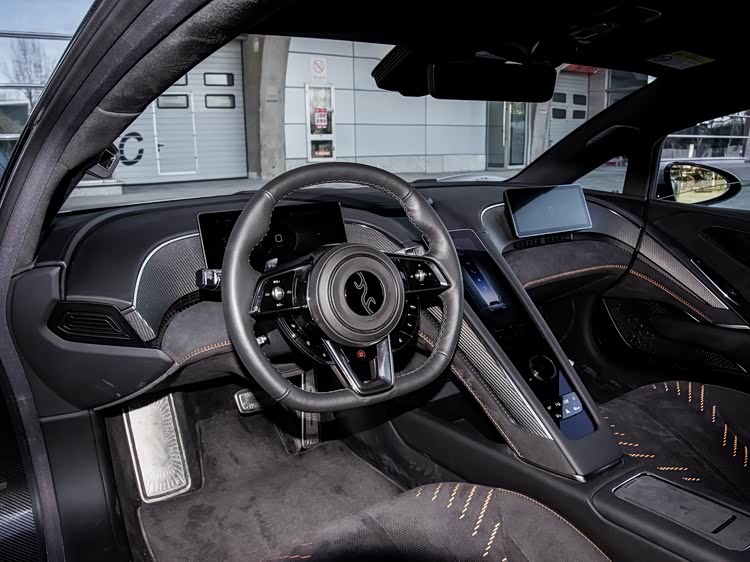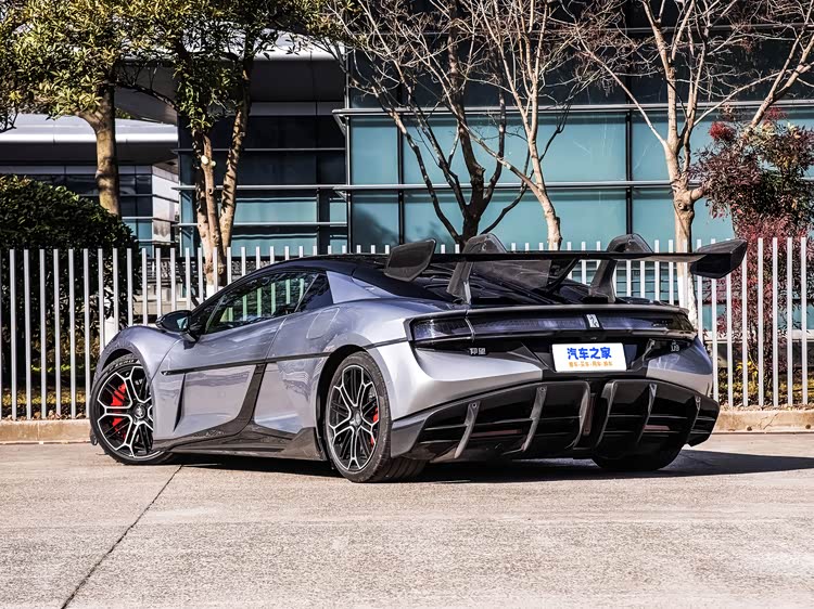 车身姿态低俯且宽阔,前悬较长,后悬较短,使得驾驶舱处于车身中央位置,进而使得比例更为和谐平衡,同时亦使重心更加贴近地面。另外,采用了蝴蝶样式的无边框车门设计,配合B柱下方设计的夸张式降低风阻的扰流槽,以及大尺寸的五辐式轮毂造型,使得整车充满了动感活力。