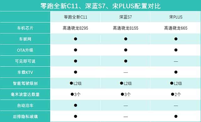 整体来看,零跑全新C11的配置更为全面,深蓝S7、宋PLUS DM-i都算够用,且二者各有优劣。