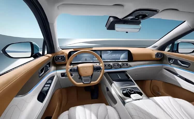 瑞虎9以其豪华的外观和实用的配置成为了市场上的佼佼者。前脸中网的格栅尺寸非常大且使用黑化设计,夜晚点亮后科技感十足。车内中控区域配备三幅平底的多功能方向盘和双12.3英寸的曲面连屏等豪华配置。