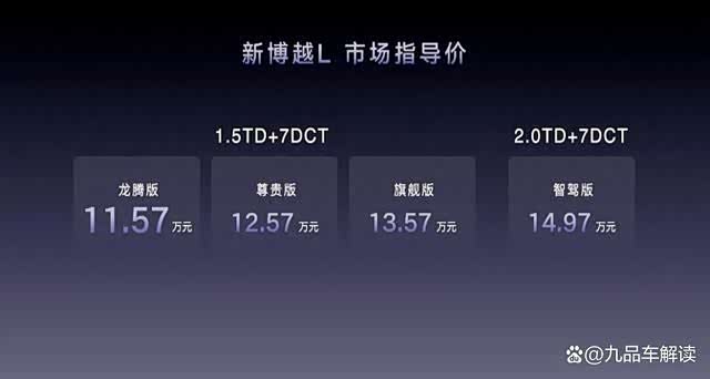 2024款吉利博越L正式上市,共推出4款车型,指导价为11.57万-14.97万元。新车主要针对内饰设计、配置等细节进行了调整,动力方面继续提供1.5T+7DCT、2.0T+7DCT两套动力总成,并且入门价格降低1万元。