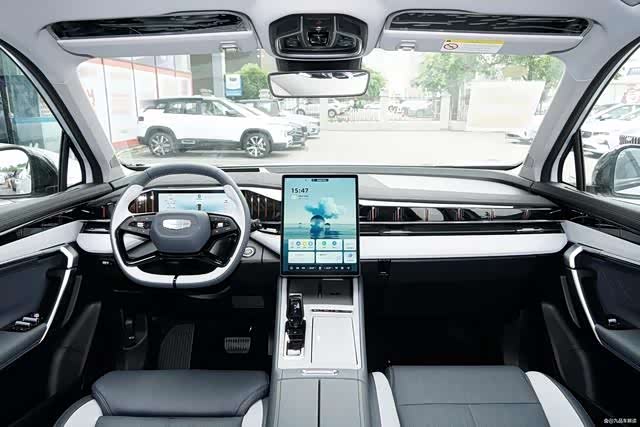 2024款吉利博越L在内饰方面有明显的升级,具体来看,新增碧波海湾蓝和月光银沙白两种配色,车机升级为银河OS 2.0车载系统,换装了全新样式电子换挡杆,增加了空调控制实体按键,杯架增加了盖板,扶手箱经过重新设计,采用按键开启、对开式布局。继续提供25.6英寸AR-HUD抬头显示系统、10.25英寸全液晶仪表盘、13.2英寸中控屏幕、高通骁龙8155芯片等。
