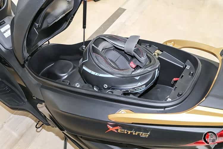 前文提到过,光阳赛艇250最大的亮点在于宽大的车身结构。尺寸方面,长宽高分别为225×800×1280(mm),轴距为1540mm,钢制弯梁结构车身框架保证了整车的稳定性和舒适性,优势在于提供了充足的坐下储物空间可容纳两顶头盔,缺点在于整备质量重达199kg。座椅高度780mm,油箱容量13L,综合续航能力400公里左右。