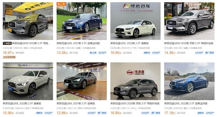 二是这里面的3个汽车品牌,有两家(讴歌、英菲尼迪)基本已经等同于是退市的节奏,而另一家品牌捷豹,虽然仍有4S店在销售车型,但2025年也将全面转型电动化。所以,基于这3家品牌的情况,再去看它们在终端的二手车,还愿意出得起价格去买这类车的人就更少了。最终,便出现了这几个品牌旗下二手车保值率极低的现象。