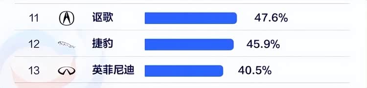 最后,排在3年保值率榜最靠后的3个汽车品牌,想必大家也不会感到陌生,没错,它们就是讴歌、捷豹和英菲尼迪,而其分别所对应的3年车龄保值率则为47.6%、45.9%和40.5%。