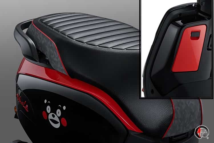 NS125LA的外观设计无疑是其最大的亮点之一。简约而流畅的曲线,复古优雅的车身形态,让人初见很难不多看两眼。标准版车型采用纯色涂装,提供了青云绿、岩灰两款配色,简约精致而又不失复古韵味。熊本熊联名版则采用了黑色涂装,搭配红色点缀,以及熊本熊的可爱元素,使整车在复古韵味的基础上,更多了些呆萌可爱俏皮的感觉。