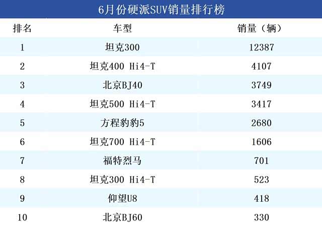 随着人们生活条件的不断提升,很多人在闲暇时光会想要开车出去自驾游或者跑跑山放松心情,此时就少不了拥有一台硬派SUV,我们盘点了6月份硬派越野车的销量数据,最近想买硬派SUV的小伙伴不妨来看看,你心仪的车位列第几名?
