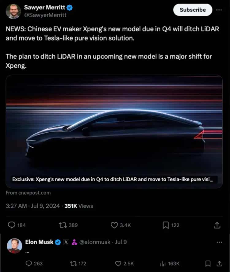 而如今,当马斯克获悉了小鹏放弃雷达的消息时,只回复了 3 点: