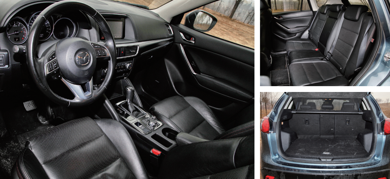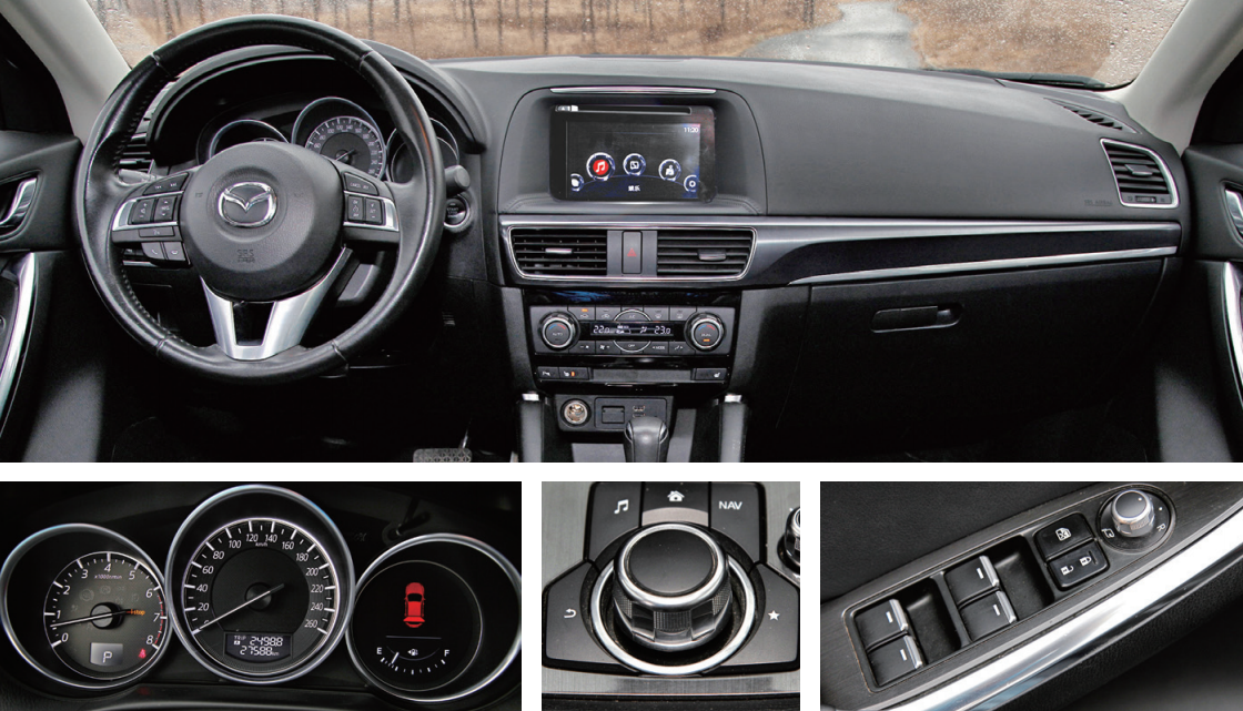 CX-5在内饰上同样流露出品牌丰富的运动化元素,使用来自赛车元素的圆筒形仪表盘与嵌入式的中控显示屏,黑色运动化的内饰配色,点缀以亚光色金属拉丝+亚光镀铬强化的装饰套件。打孔真皮座椅配合红色缝线给人以强烈的颜色对比。中控台上旋钮按键的阻尼也是恰到好处,操作不会生涩并且手感舒适,对人机工程学进行全方面的权衡,也是马自达的突出优势。CX-5顶配车型上搭载9扬声器的BOSE高保真音响,提供了温馨愉悦的乘坐体验。