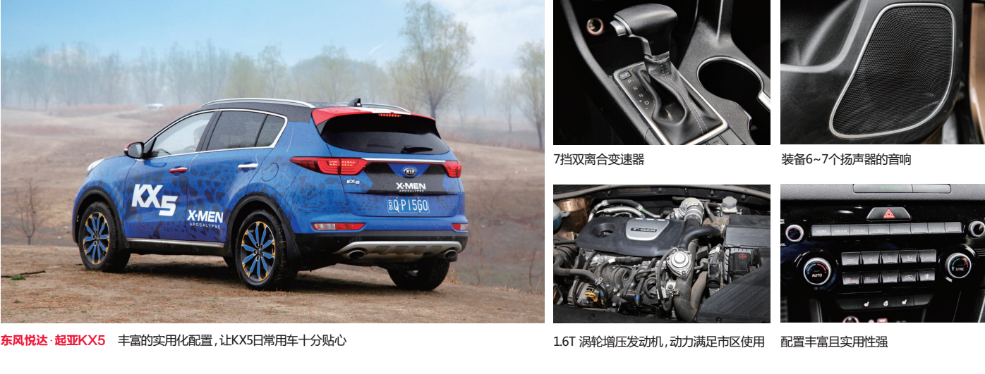 单纯从排量上说,KX5无法同CX-5、科雷傲同场竞技,那么我们不妨看看它们三个在功率及扭矩上的比较。装备1.6T涡轮增压发动机的KX5最大功率为130 kW,最大扭矩为265 N·m。CX-5和科雷傲均使用2.5 L自然吸气发动,CX-5最大功率为144 kW,最大扭矩为252 N·m;科雷傲最大功率为137 kW,最大扭矩为233 N·m。从数据表现上看,KX5介于CX-5和科雷傲之间。