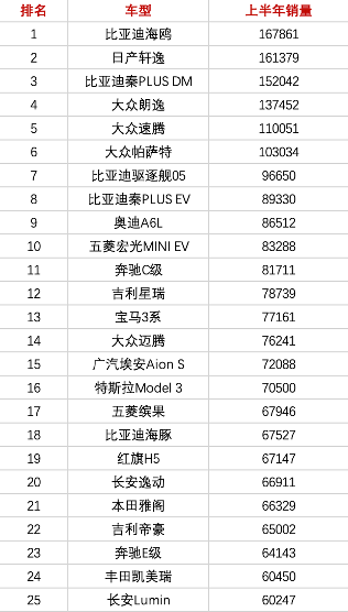 仔细盘了一遍上半年销量排在前25名的轿车车型后,有一个强烈的感受:舆论很性感,数据很骨感。