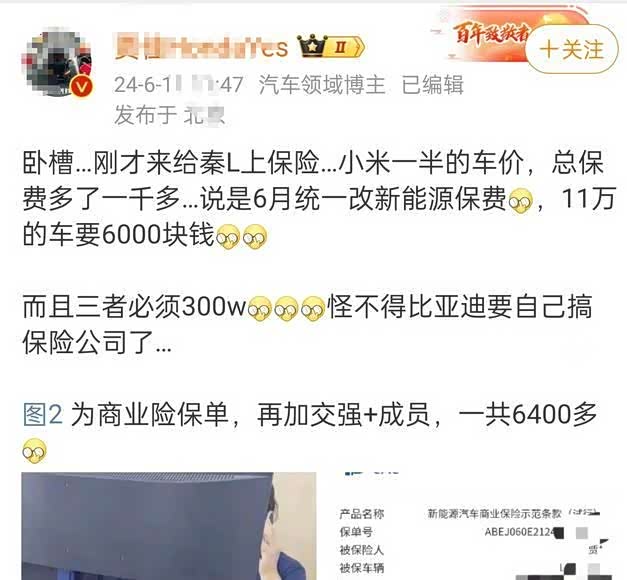 6400的保费对10.98万的秦L来说,可以说是天价,难道是保险公司在针对比亚迪车,担心比亚迪保险的到来。