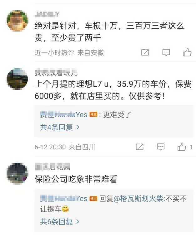 有网友跟帖回复到,上个月花35.9万提的理想L7 Ultra,在4S店买的保险,保费才6千多元,这样一对比,更是让人看不懂车保险了。