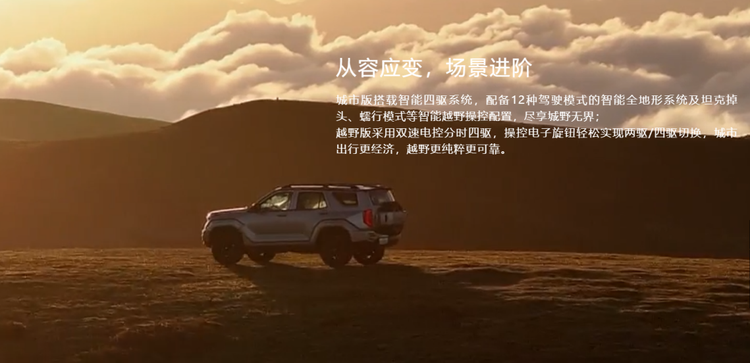 曾经,当很多人在抱怨Jeep太贵、大G太遥远的时候,坦克400 Hi4-T以不到三十万的起售价征服了万千越野粉,仿佛在说“你看看我怎么样”?而当我们又在觊觎陆巡、普拉多甚至LX之时,坦克400 Hi4-T强大的越野实力与豪车级的驾乘体验,让大家有了更好的选择。坦克400 Hi4-T以其独特的机甲设计语言与硬派的越野实力,一步步踏上成王之路,未来的坦克400 Hi4-T将让更多用户感受到它的硬派与柔情,并与用户一道,奔向新的征途。