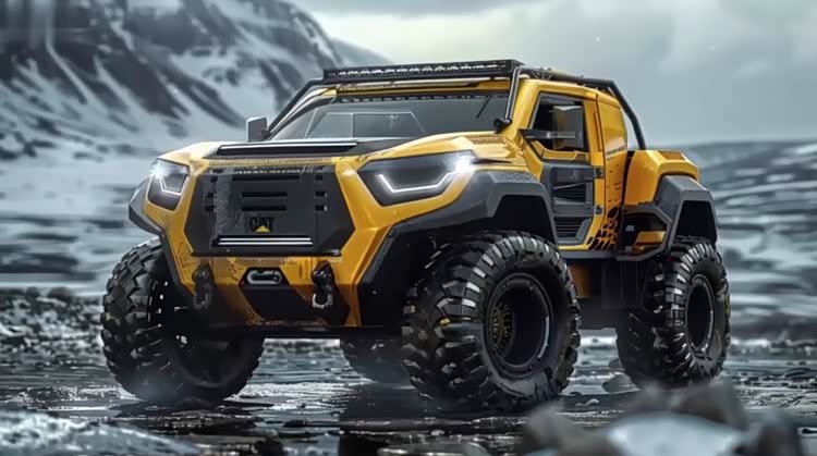 引擎盖上的肌肉线条暗示着强悍的动力性能。作为一款主打越野性能的皮卡, 2025款卡特彼勒皮卡在越野能力方面表现出色,其装备了全时四驱系统,配合全地形轮胎和多模式驾驶,无论是崎岖山路、沙漠戈壁还是泥泞湿地都能轻松应对。