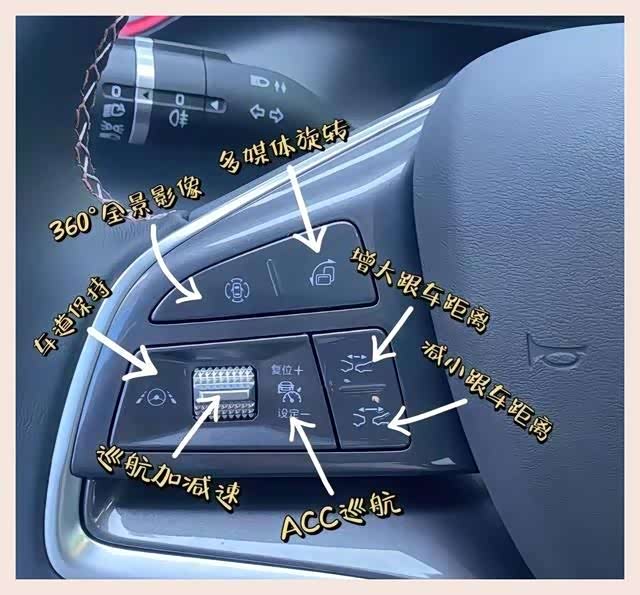 那个拨杆顶部有个开关,按下它就是开启定速巡航的快捷键,操作起来就跟玩儿似的。