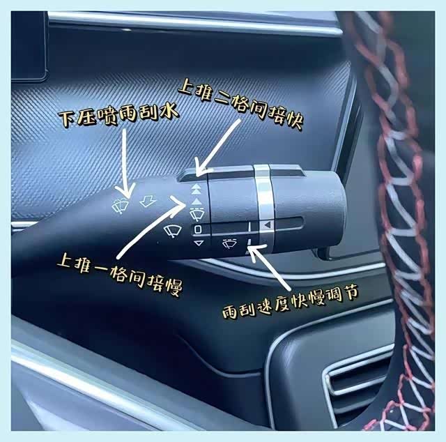 雨刮器的快慢调整,轻轻旋转那个滑块,就能根据天气变化调整刮水速度。