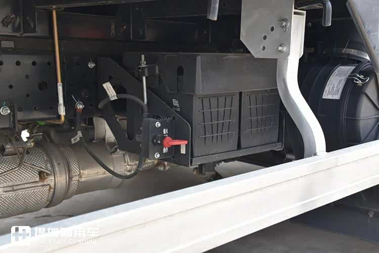 来到车身另一侧,两块巨江电池为车辆的启动和车上的电气化配置提供安全稳定的电力支持。24V的电源设计增强了车辆的电力储备,很大程度上确保了这辆帅铃S9在极端和低温天气下的启动。强大的电力储备也使得车内220V\500W的电源能够延伸出更多的使用方式。此外,此车还带有电源手动开关设计,保证了车辆长期停放状态下的电池健康以及车辆安全。