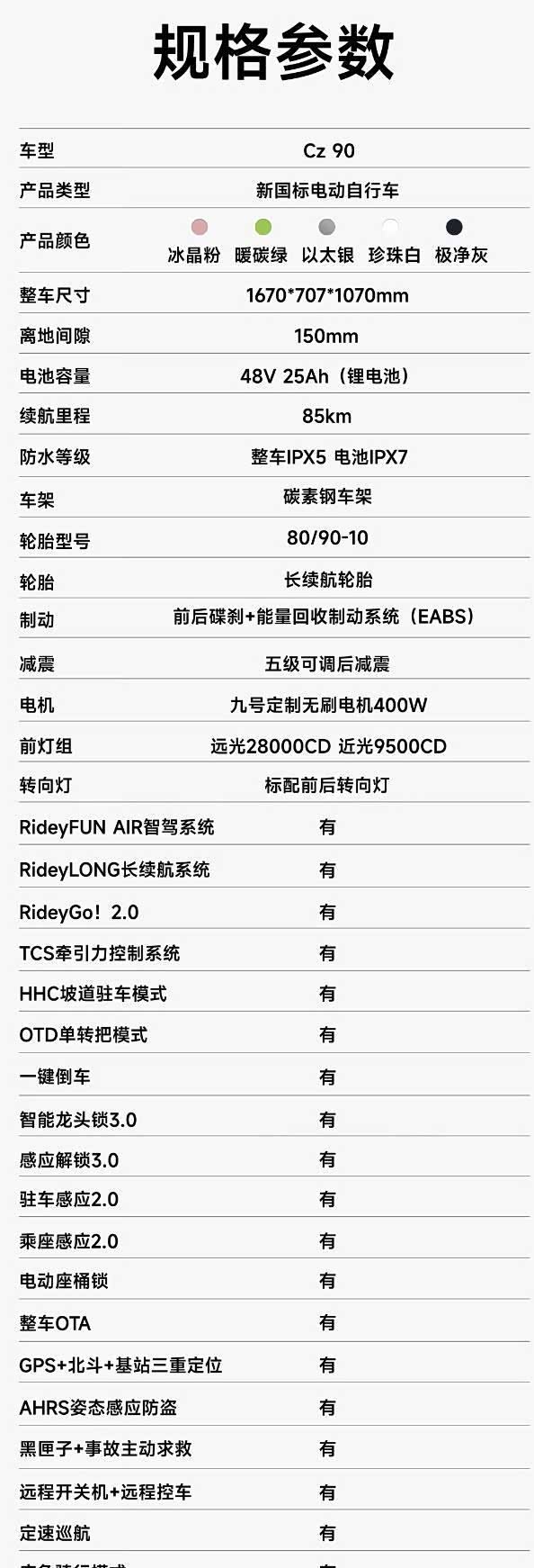 九号电动自行车推出了两款新品 Nz 90 和 Cz 90,外观设计和智能功能各具特色,不同年龄段的消费者都能找到适合自己的款式。其中,Nz 90 升级了前后减震可调、电机功率增加等功能,而 Cz 90 则有半透明前面板和丰富的智能功能。想了解更多?快来看看这两款新品的详细介绍!