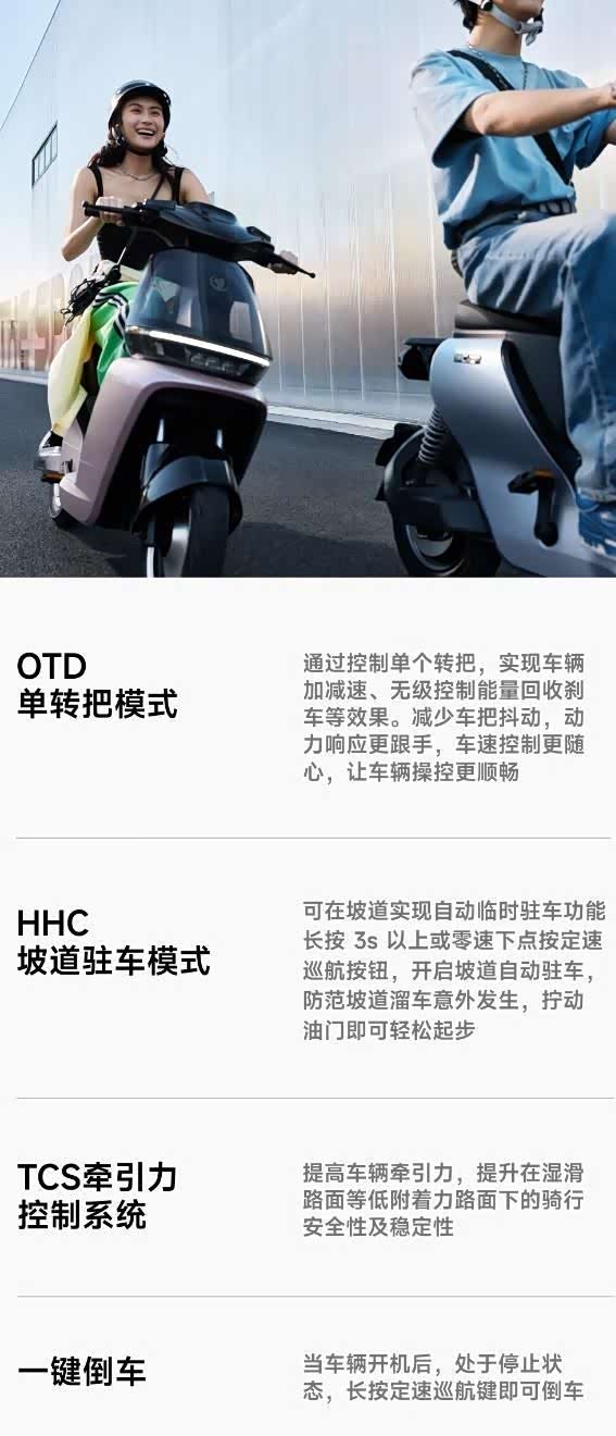 从功能上看 Nz 90 也是相当丰富的,无论是智能防盗、usb 充电、led 大灯、语音播报等功能都有。最让人惊喜的是 Nz 90 还可以根据你的喜好选择升级配置,比如加装行李架、儿童座椅、防水音响等。
